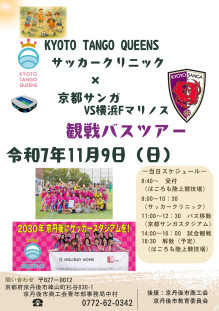 京丹後市商工会が11月9日、「京都丹後QUEENS(クイーンズ)サッカークリニック」を開催する。