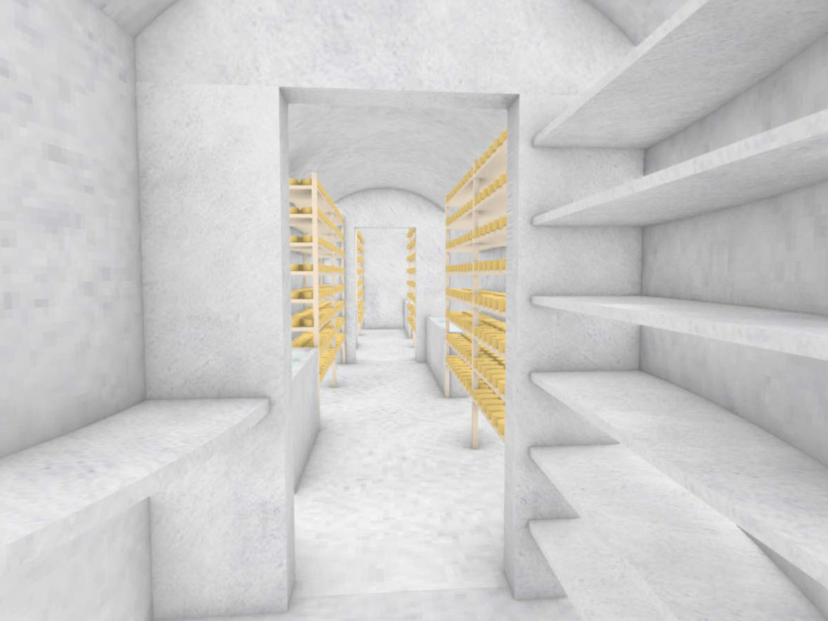 熟成庫の外観。牧場の敷地内に半地下で建設予定