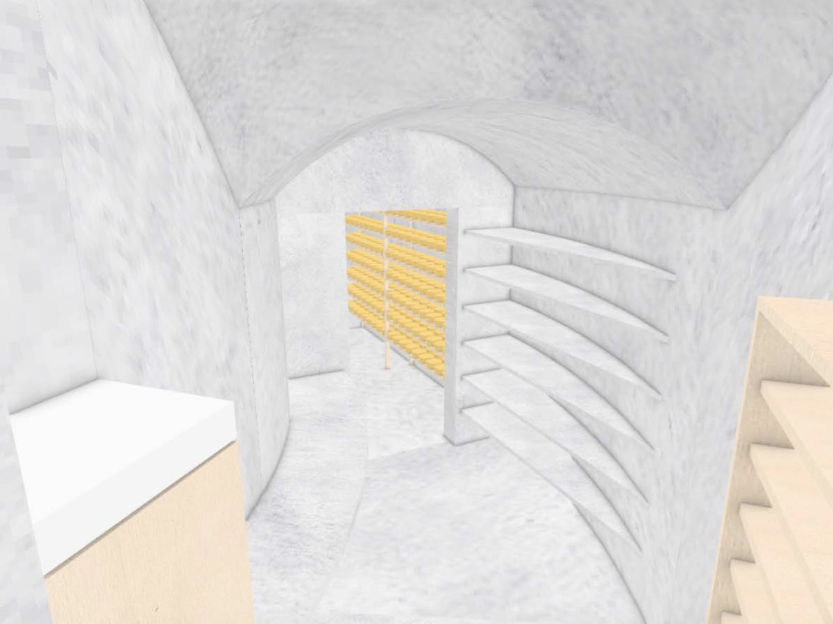 熟成庫内のイメージ。地下水を通し、温度と湿度管理をするという